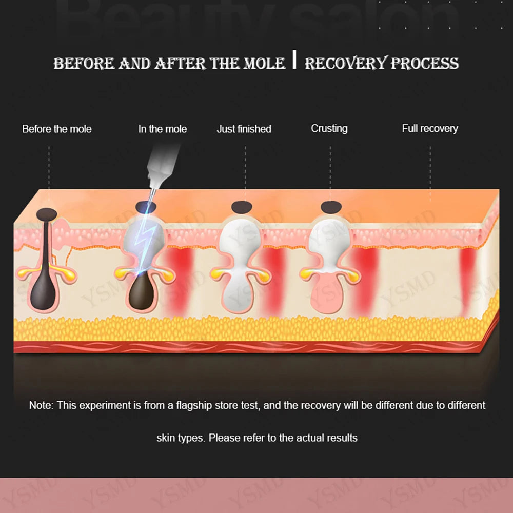 Many skin tags and small blemishes can be treated in a single session. Healing usually takes 3–7 days, depending on the size of the spot.